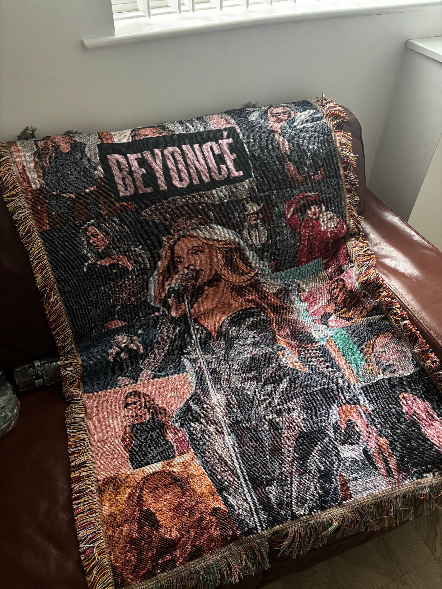 Wrap yourself in the magic of Beyoncé. Inspired by her unmatched style, power, and the spirit of the Beyhive, this blanket is the ultimate blend of comfort and royalty.